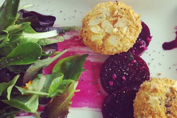 The café is far more sophisticated than you’d usually expect to find in such a casual beachside environments – we are far more used to seeing cafes serving comfort food and snacks. The food is good and served quickly. We ordered a Goat’s Cheese Salad and the Seared King Scallop with Risotto Cake.